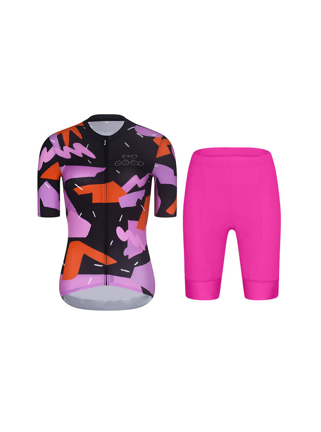 Krótka koszulka kolarska i spodenki - BIKE´S GOOD - cyklamen/kolorowy/czarny