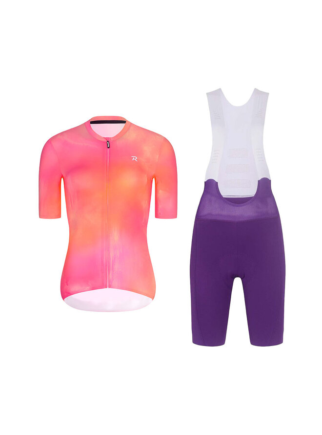 Krótka koszulka kolarska i spodenki - COSMA - fioletowy/pomarańczowy/różowy