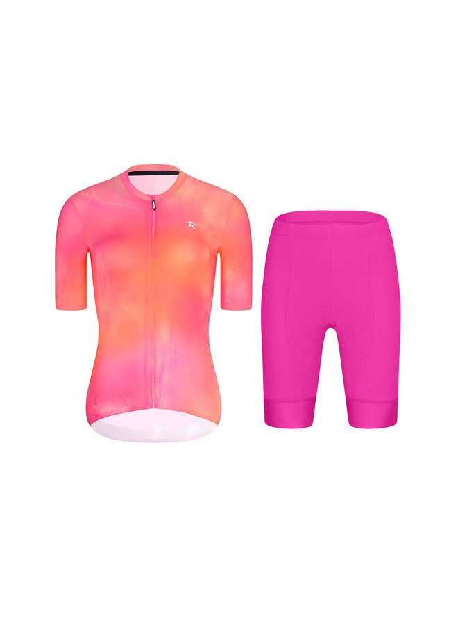 Krótka koszulka kolarska i spodenki - COSMA - cyklamen/pomarańczowy/różowy