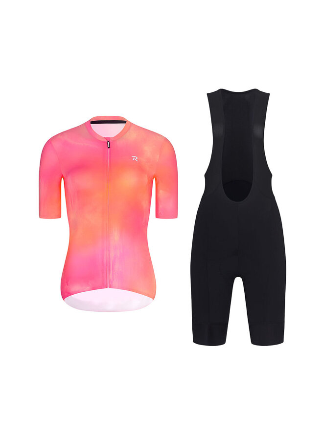 Krótka koszulka kolarska i spodenki - COSMA - czarny/pomarańczowy/różowy