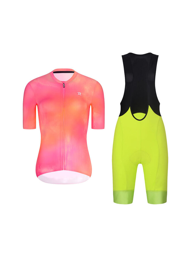 Krótka koszulka kolarska i spodenki - COSMA - żółty/czarny/pomarańczowy/różowy