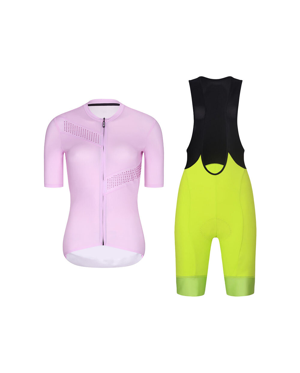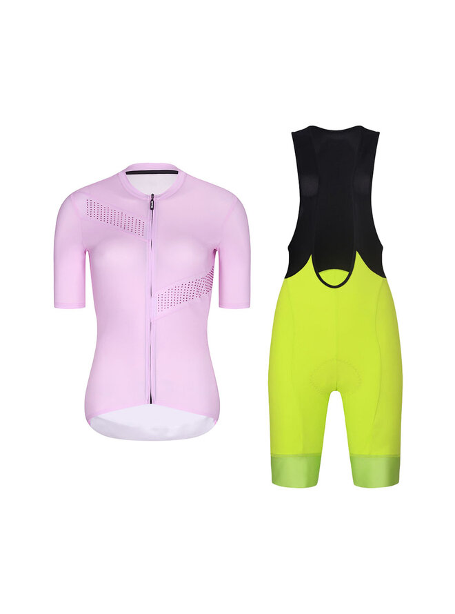 Krótka koszulka kolarska i spodenki - CRYSTELLE - żółty/czarny/różowy