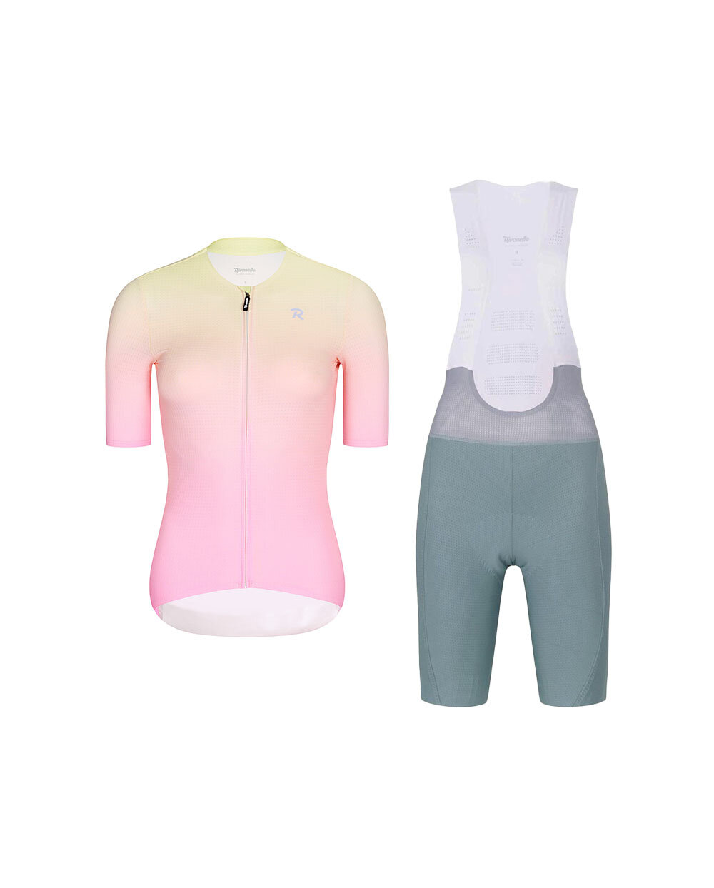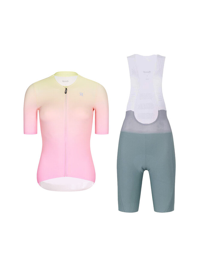 Krótka koszulka kolarska i spodenki - ELEVATE - zielony/różowy/kolorowy