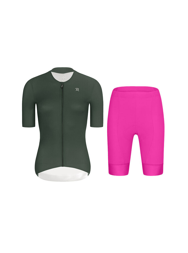 Krótka koszulka kolarska i spodenki - ELEVATE - cyklamen/zielony