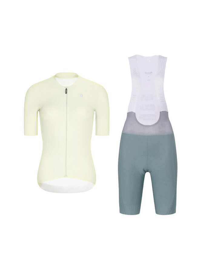 Krótka koszulka kolarska i spodenki - ELEVATE - zielony/kość słoniowa