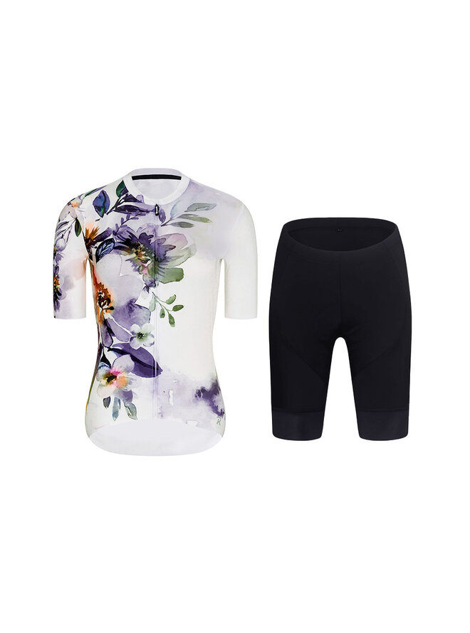 Krótka koszulka kolarska i spodenki - FLOWERY LADY - czarny/biały/kolorowy