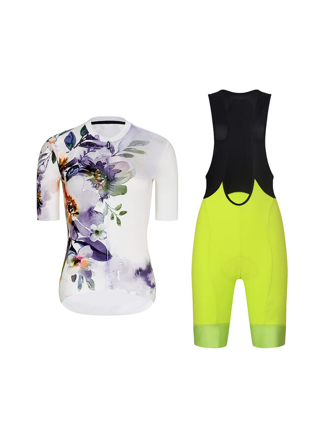 Krótka koszulka kolarska i spodenki - FLOWERY LADY - żółty/czarny/biały/kolorowy