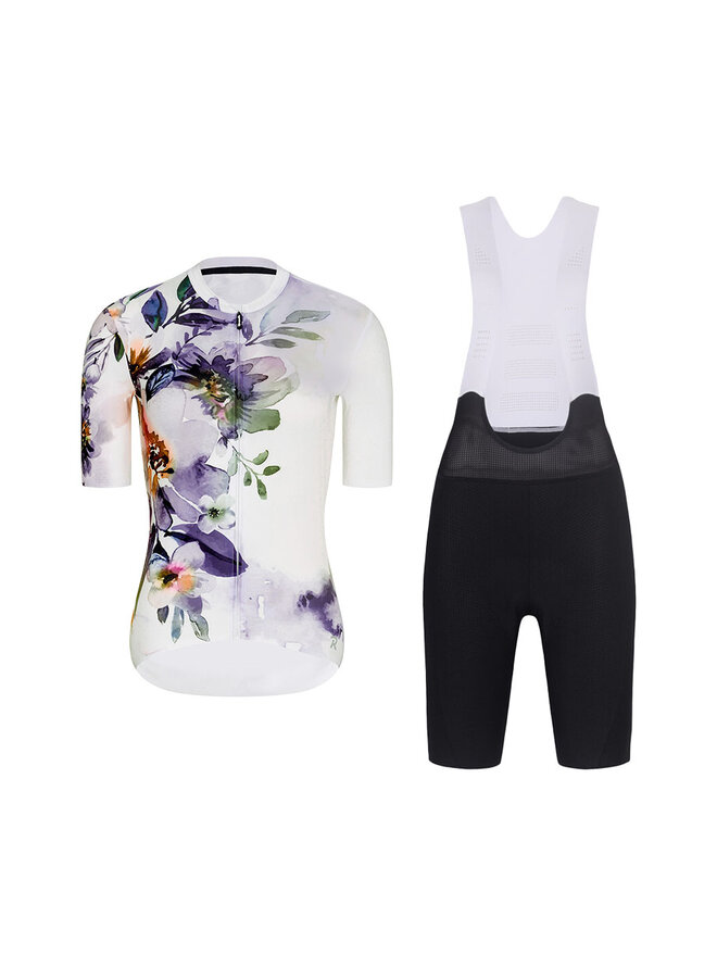 Krótka koszulka kolarska i spodenki - FLOWERY LADY - czarny/biały/kolorowy