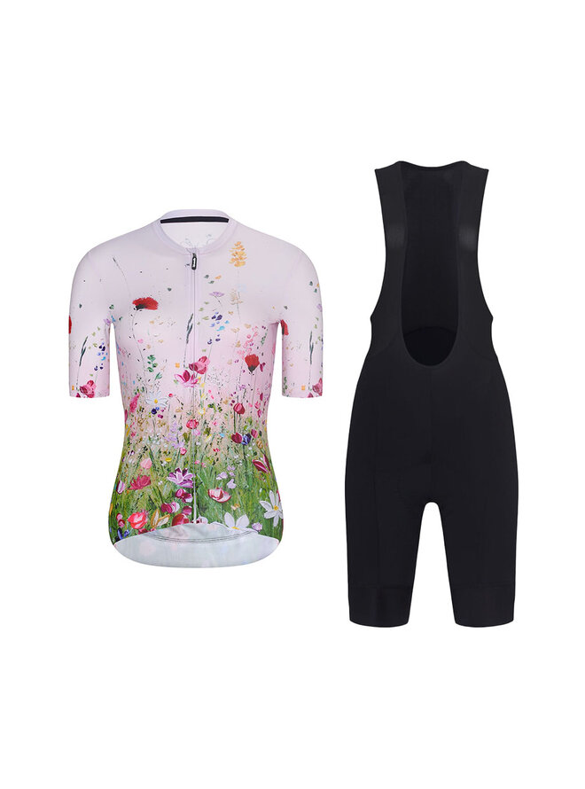 Krótka koszulka kolarska i spodenki - IN BLOOM - czarny/różowy/kolorowy