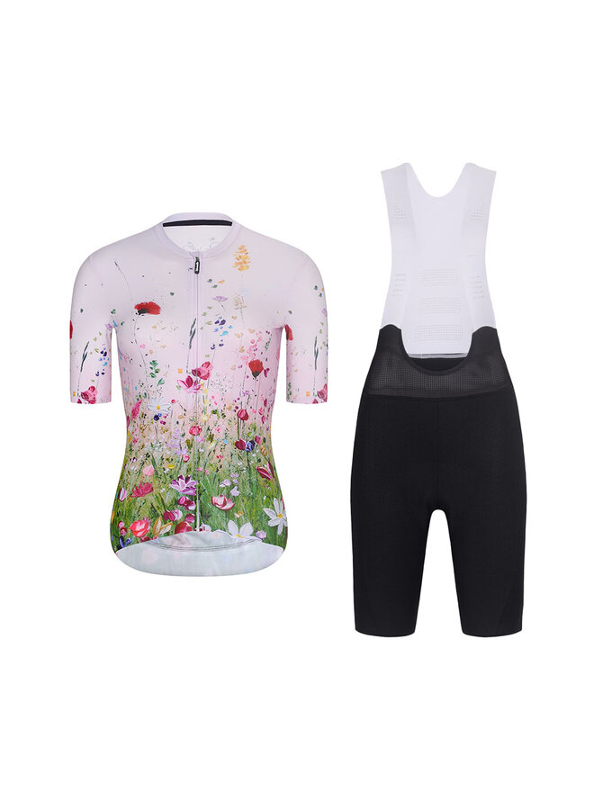 Krótka koszulka kolarska i spodenki - IN BLOOM - czarny/różowy/kolorowy