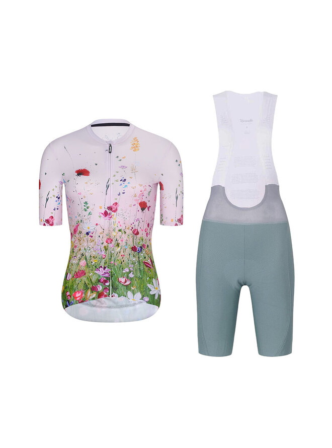Krótka koszulka kolarska i spodenki - IN BLOOM - zielony/różowy/kolorowy