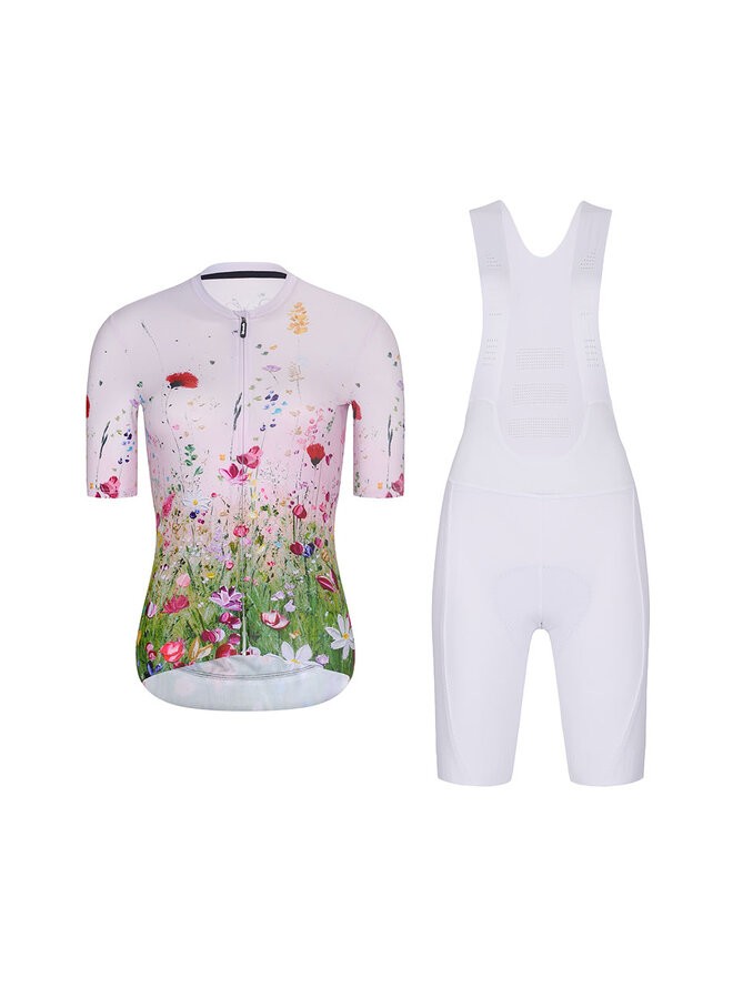 Krótka koszulka kolarska i spodenki - IN BLOOM - biały/różowy/kolorowy