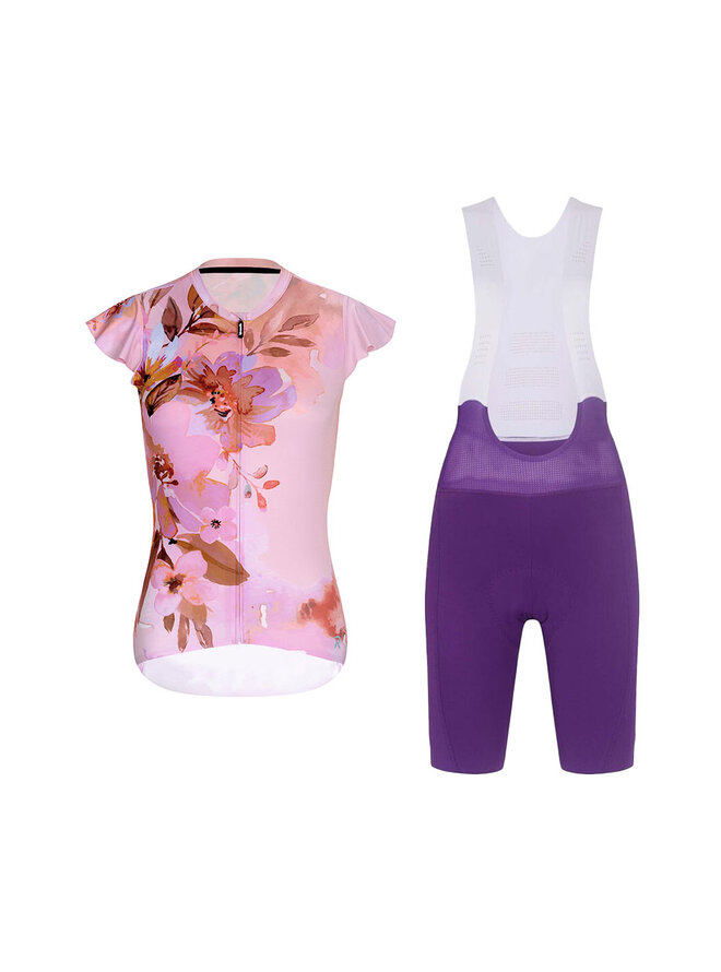 Krótka koszulka kolarska i spodenki - MISS FLOWERY - fioletowy/różowy