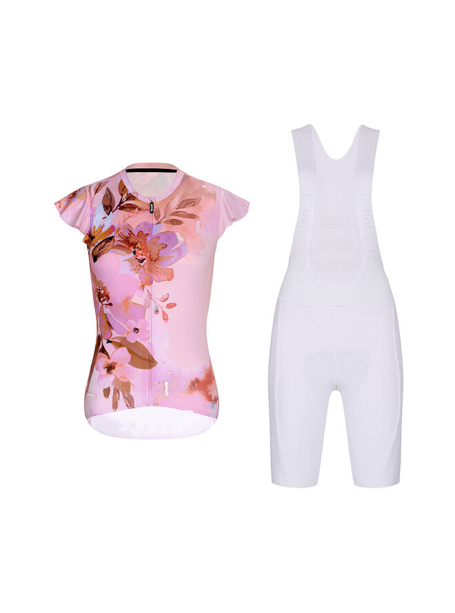 Krótka koszulka kolarska i spodenki - MISS FLOWERY - biały/różowy