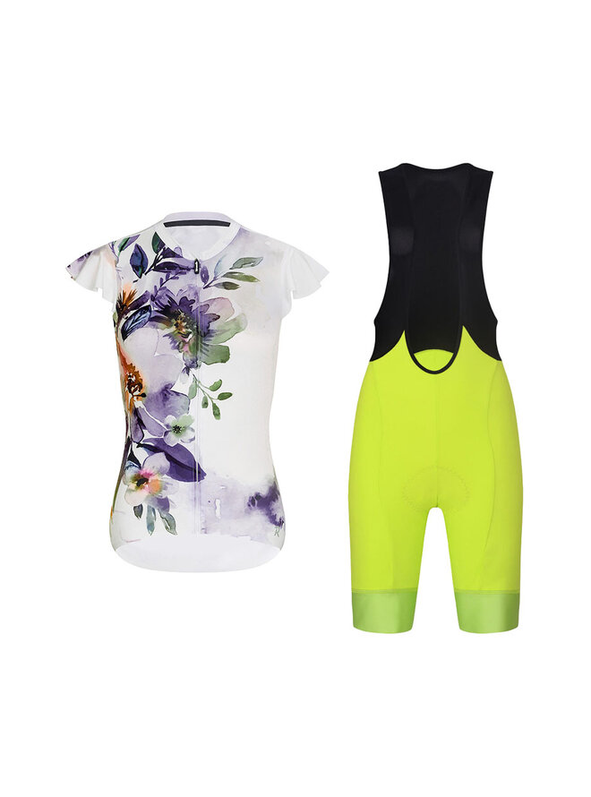 Krótka koszulka kolarska i spodenki - MISS FLOWERY - żółty/czarny/biały/kolorowy