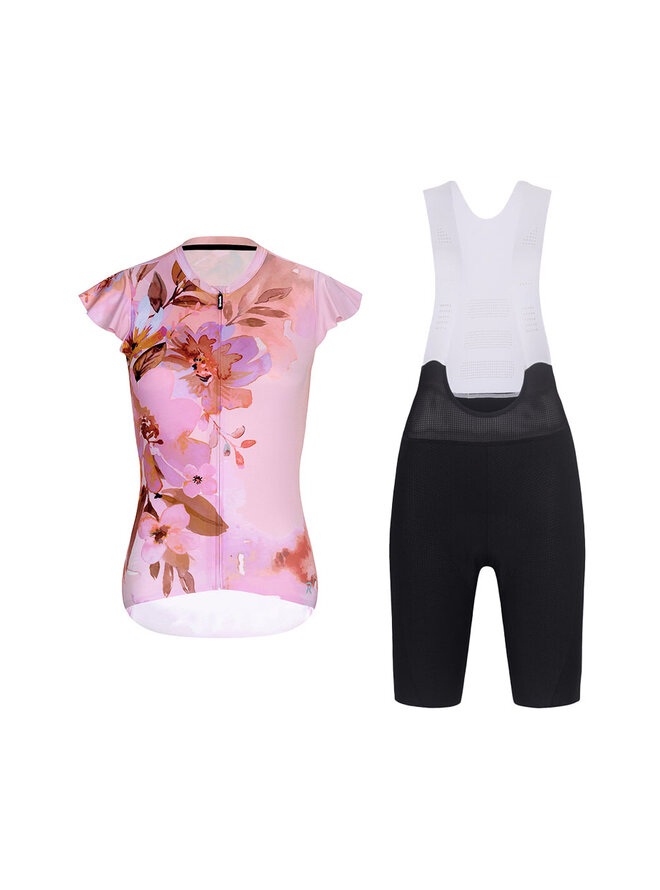 Krótka koszulka kolarska i spodenki - MISS FLOWERY - czarny/różowy