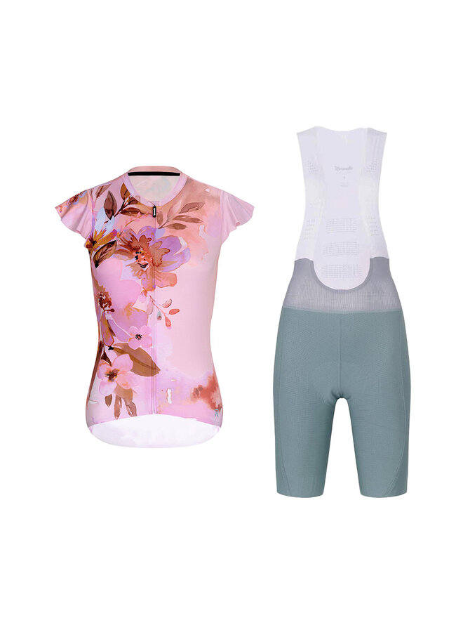 Krótka koszulka kolarska i spodenki - MISS FLOWERY - zielony/różowy