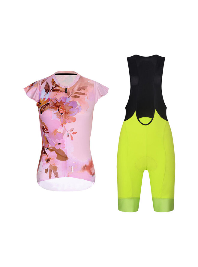 Krótka koszulka kolarska i spodenki - MISS FLOWERY - żółty/czarny/różowy
