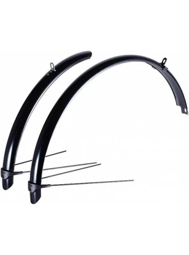Zestaw błotników przednich i tylnych zapewnia ochronę przed wodą i brudem.Odpowiedni do rowerów dziecięcych, miejskich i trekkingowych.Montaż na tylnych oczkach konstrukcyjnych i śrubie hamulca.Sztywna konstrukcja ze stalowymi rozpórkami.Profil polipropylenowy o wysokiej trwałości.Dostępne dla rozmiarów kół: 20", 22", 24", 26", 28".Szczegóły