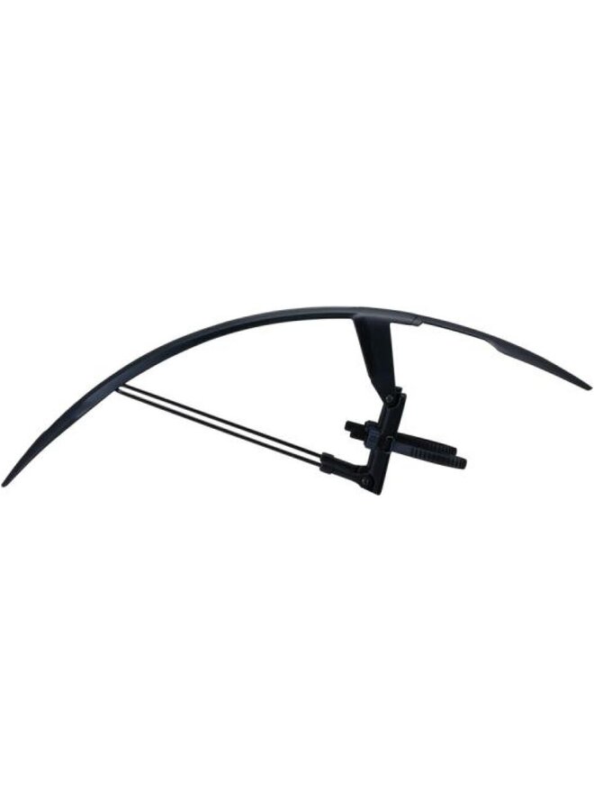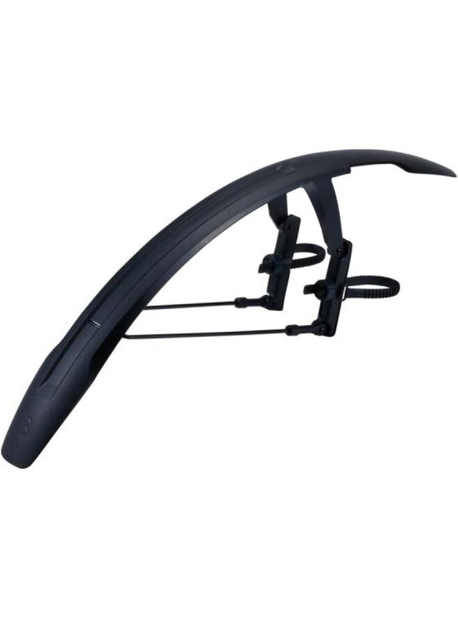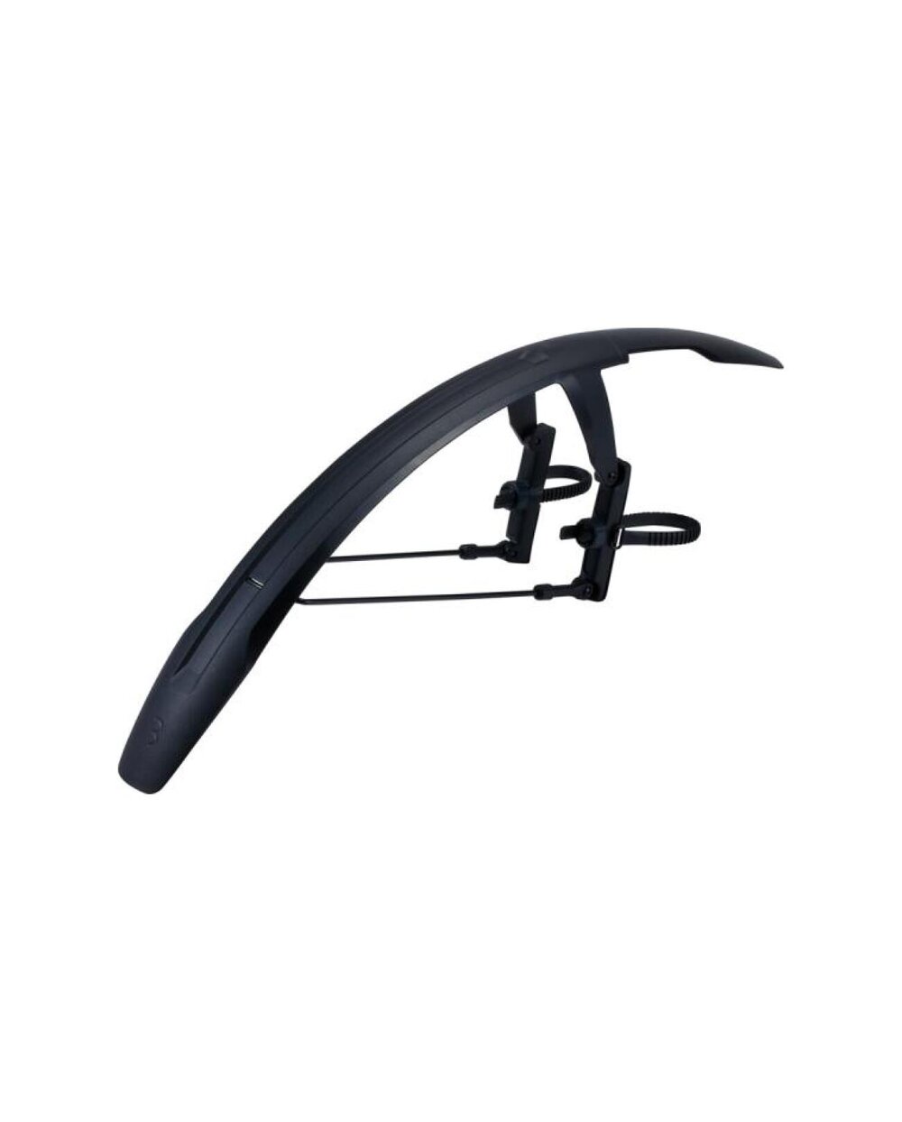 Przedni błotnik z pełną regulacją kąta, wysokości i długości Beznarzędziowy system montażu na przednim widelcu dla szybkiej instalacji Duża antypoślizgowa gumowa powierzchnia montażowa zapewniająca stabilność i ochronę ramy Dostarczany z zestawem przedłużek dla większej wszechstronności Wykonany w 75% z trwałego i mocnego materiału PP z recyklingu z certyfikatem GRS Kompatybilny z kołami 28" Maksymalna szerokość opony to 1,6"Szczegóły