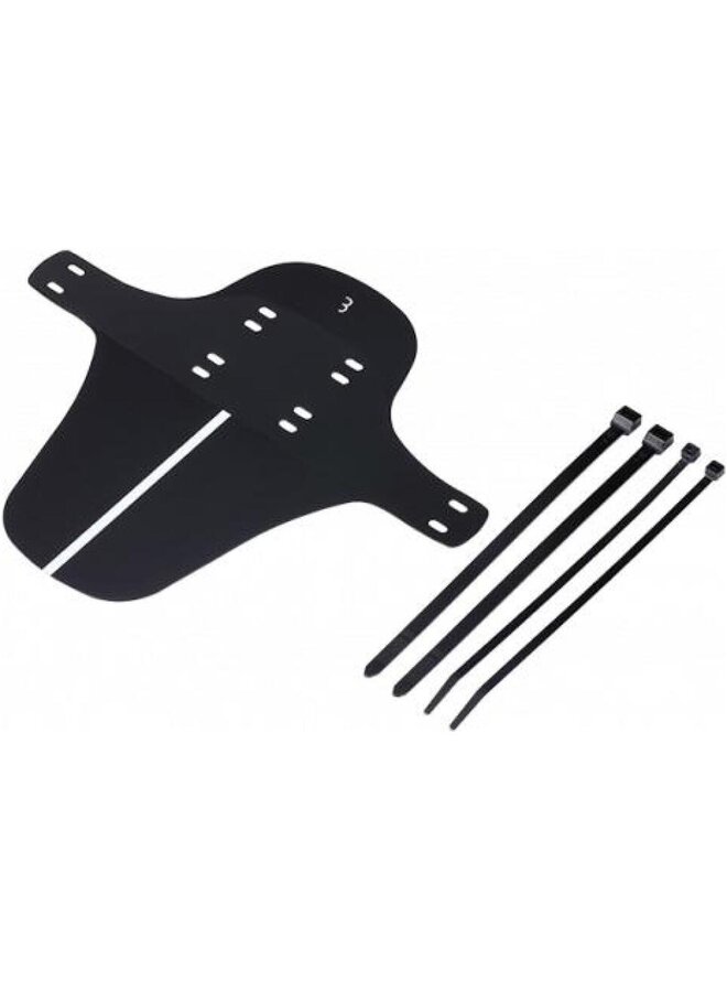 Lekki, wytrzymały błotnik z polipropylenu. Może być montowany jako przedni lub tylny błotnik. Dodatkowa ochrona ślizgaczy widelca. Służy również jako dodatkowa ochrona widelca i ramy. Opakowanie zawiera 4 paski ściągające. Waga: 38 g.Szczegóły