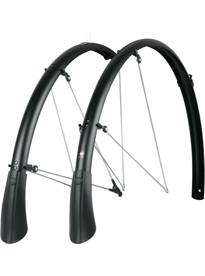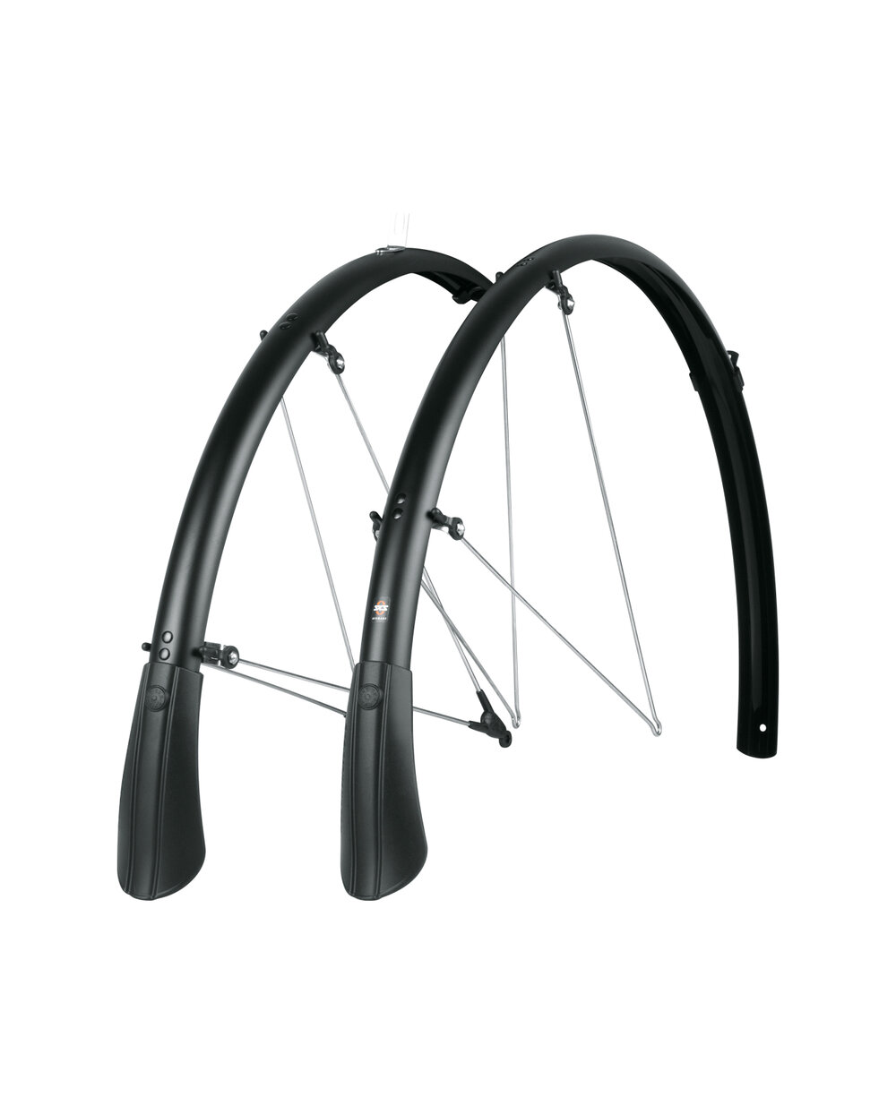 Zestaw błotników do 28-calowych rowerów crossowych i trekkingowych, w tym wysokiej jakości rozpórki ze stali nierdzewnej.