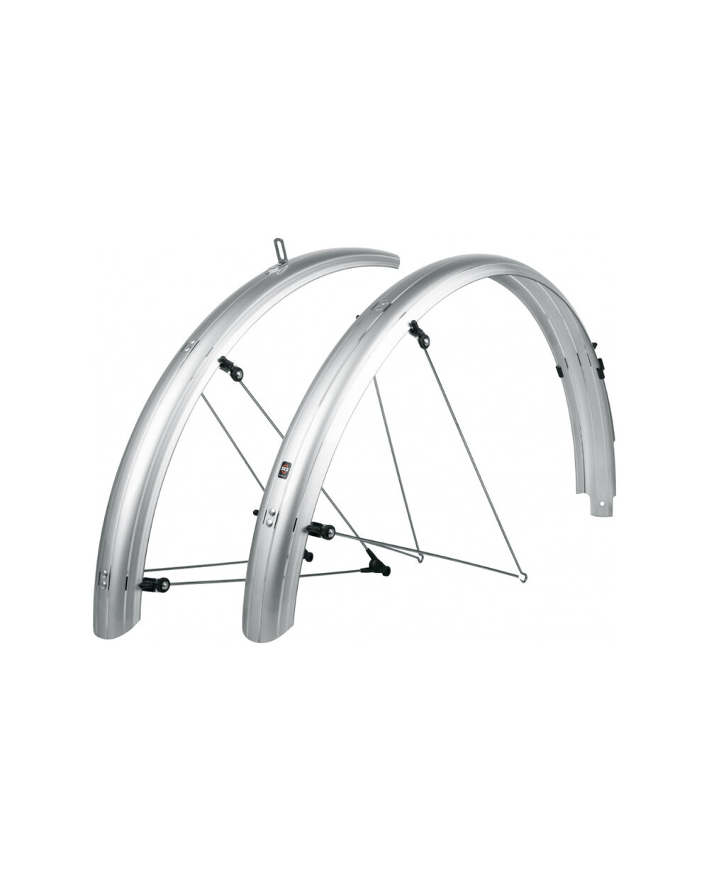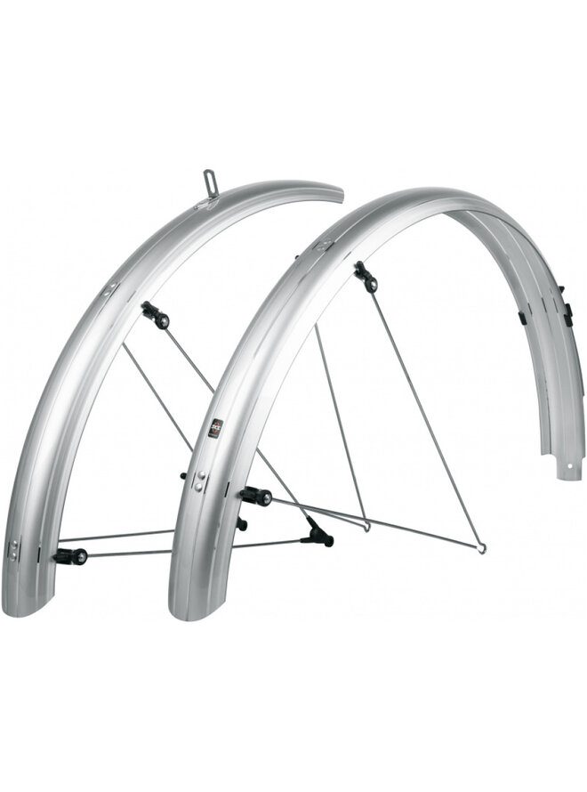 SKS Bluemels Basic to zestaw błotników wykonanych z solidnej konstrukcji typu sandwicz. Ich błyszczący design robi wrażenie, niezawodnie chroni przed brudem i rozpryskami wody. Dzięki elastycznej konstrukcji warstwowej, w której ultracienkie paski aluminium są osadzone w powłoce z tworzywa sztucznego, błotniki są wyjątkowo wytrzymałe, sztywne i odporne na korozję. Stanowią doskonałą ochronę dzięki montażowi blisko obudowy. Niezależnie od tego, czy poruszasz się po drogach gruntowych, czy leśnych, błotniki BLUEMELS Basic zapewniają doskonałą wszechstronną ochronę. System bezpieczeństwa ESC odłącza rozpórki, jeśli gałęzie utkną między szprychami koła, zapobiegając utknięciu koła.