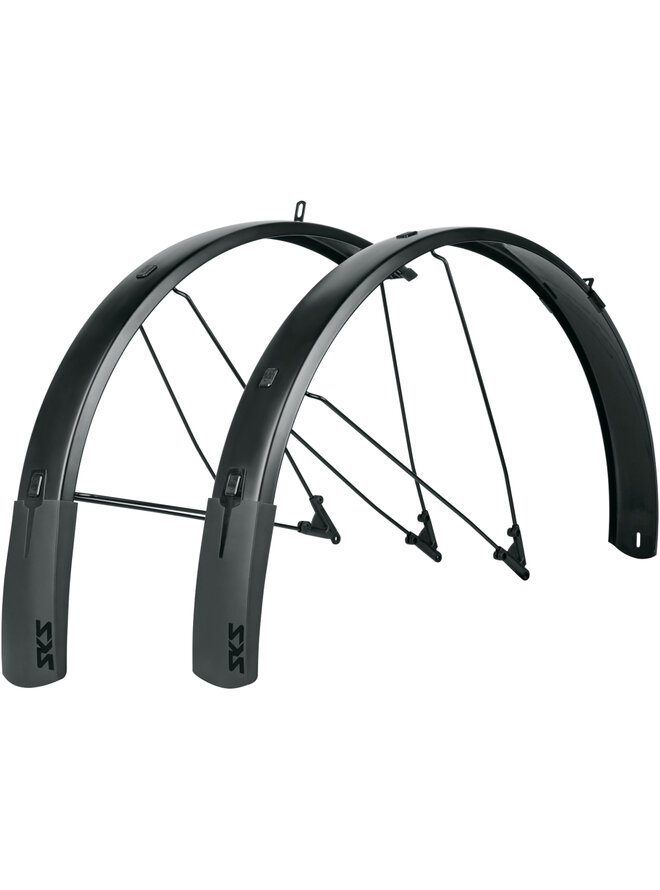 Zestaw błotników z elastycznym spojlerem. Błotniki nie mogą być dłuższe: zestaw błotników BLUEMELS STYLE z elastycznym spojlerem zapewnia doskonałą wszechstronną ochronę przed zachlapaniem. Dzięki elastycznej konstrukcji warstwowej, w której ultracienkie paski aluminium są osadzone w plastikowej powłoce, błotnik jest wyjątkowo wytrzymały, mocny i odporny na korozję. Nowy adapter V z systemem bezpieczeństwa ESCS w czarnym matowym wykończeniu i czarnymi elementami łączącymi nadaje BLUEMELS STYLE jednolity wygląd i wyróżnia się wyglądem. Nowo opracowany adapter V z systemem bezpieczeństwa ESC odłącza podwójne ramiona U, jeśli gałęzie utkną między szprychami, dzięki czemu koło nie utknie. Akcesoria i wsporniki w zestawie.