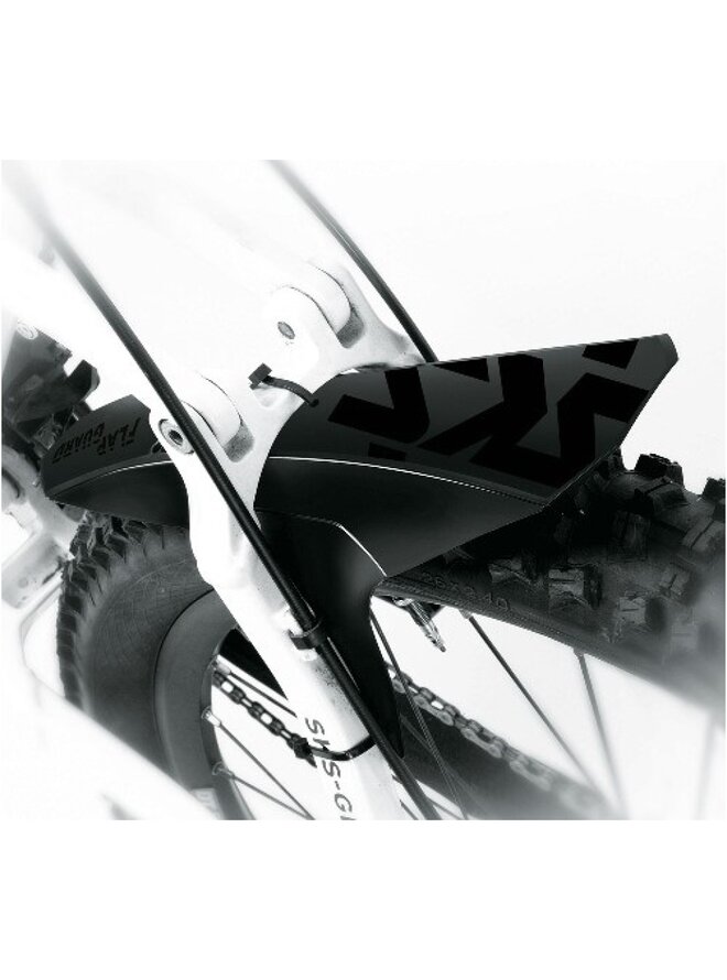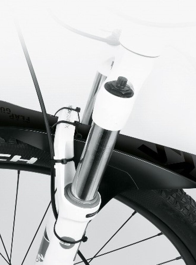 Proste plastikowe błotniki zarówno do przedniego widelca, jak i tylnej konstrukcji. Wykonany z miękkiego tworzywa sztucznego, dzięki czemu jest uniwersalny dla kół 26, 27,5 i 29 cali i kompatybilny z większością widelców.