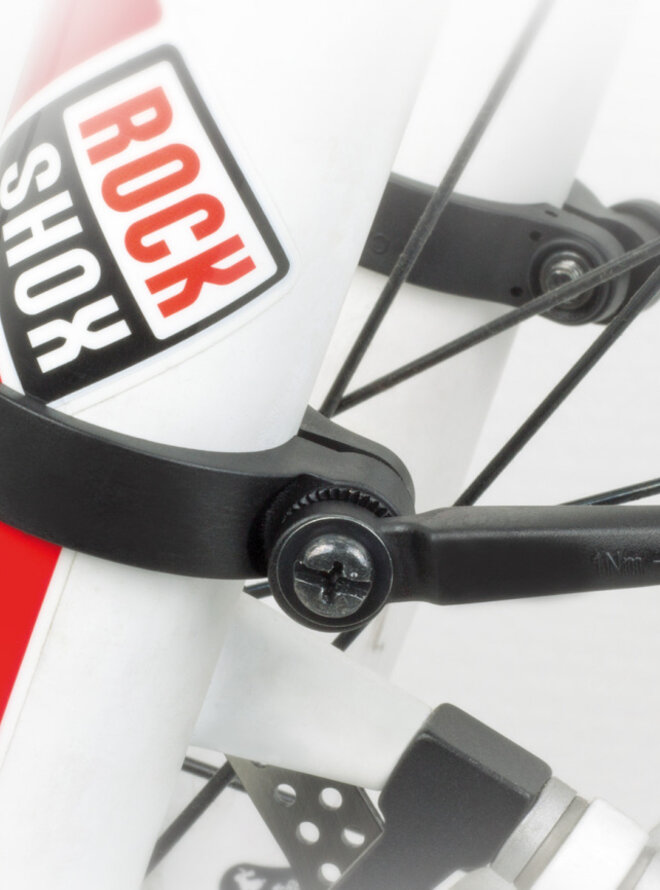 Wsporniki montażowe błotnika służą do montażu przedniego błotnika do widelca, gdy widelec nie ma mocowań błotnika lub nie są one łatwo dostępne. Dostępne w trzech rozmiarach w zależności od średnicy nogi widelca.