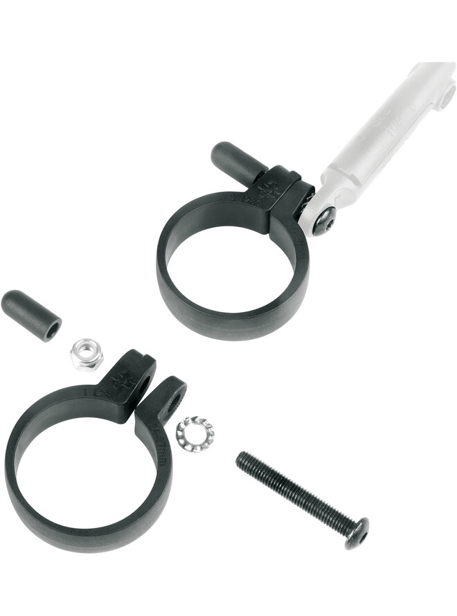 Wsporniki montażowe błotnika służą do montażu przedniego błotnika do widelca, gdy widelec nie ma mocowań błotnika lub nie są one łatwo dostępne. Dostępne w trzech rozmiarach w zależności od średnicy nogi widelca.