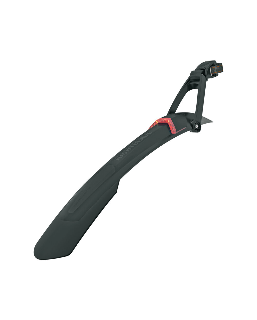 Błotnik Nightblade to idealne rozwiązanie dla rowerów górskich. Zapewnia nie tylko doskonałą ochronę przed bryzgami wody, ale także zwiększa bezpieczeństwo dzięki zintegrowanemu tylnemu światłu z akumulatorem. Lampę można łatwo wyjąć i naładować przez USB. Dzięki prostemu systemowi mocowania błotnik jest kompatybilny z prawie wszystkimi typami sztyc podsiodłowych, a jego regulacja za pomocą dwóch przegubów zapewnia idealne dopasowanie do każdego roweru.