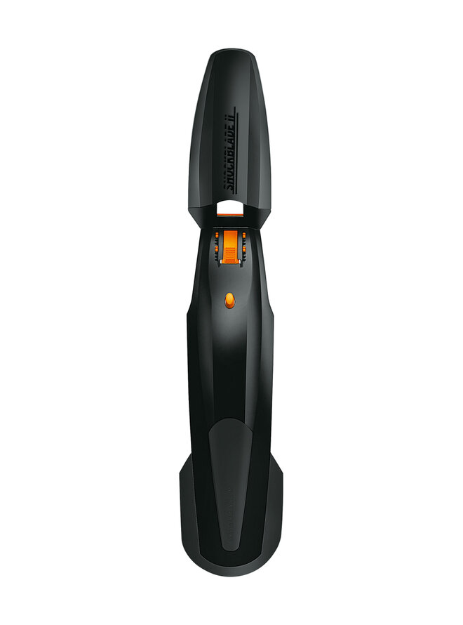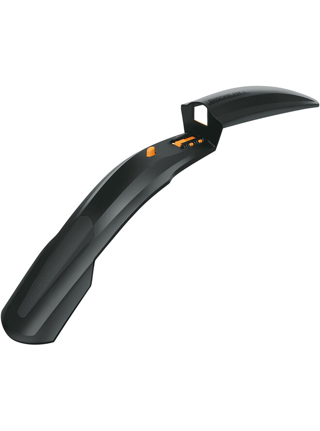SKS Shockblade II to najwyższej klasy przedni błotnik do widelca amortyzowanego z gumowym ostrzem, odpowiedni do kół 26-27,5" z redukcjami do wszystkich sztyc widelca 15-35 mm, w tym Tapered.