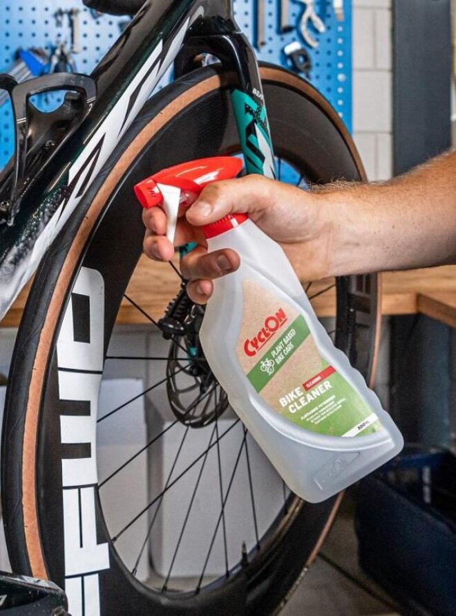 Wydajny środek do czyszczenia rowerów na bazie roślin CyclOn służy do usuwania uporczywych zabrudzeń, takich jak błoto i kurz, z ramy, kół i innych części. Ten środek do czyszczenia rowerów nadaje się do stosowania na matowych, malowanych, niepomalowanych i plastikowych powierzchniach. Czyszczenie roweru jest łatwe i skuteczne.Funkcje: