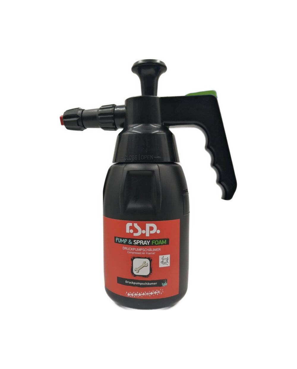 Profesjonalny atomizer. Idealny w połączeniu z RSP Muddy Buddy. Tworzy obfitą pianę, która jest łatwa do nałożenia na rower, nie przecieka i trwa dłużej. W zestawie trzy dysze dla różnych gęstości piany. Również do użytku z odtłuszczaczami lub innymi środkami czyszczącymi. Jakość przemysłowa. Długa żywotność. Pojemność 0,9 l