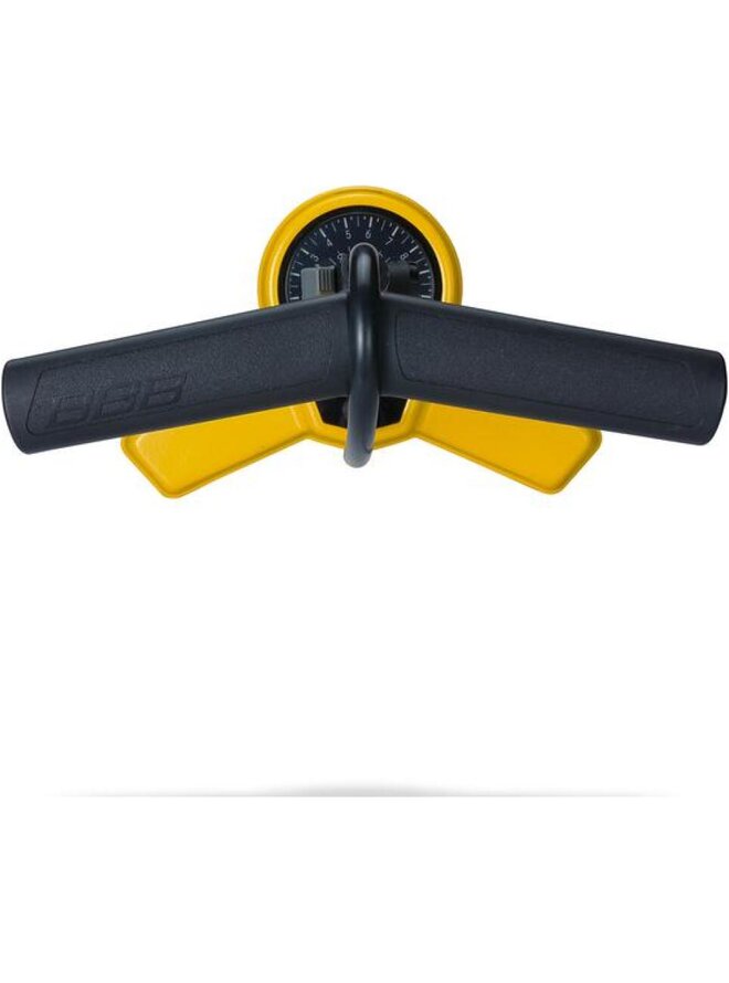 Pompa o bardzo wysokiej wydajności. Dokładny 3-calowy podwójny manometr wskazuje ciśnienie w barach i psi. Ergonomiczny uchwyt w kształcie bumerangu ułatwia naturalne ułożenie dłoni i zwiększa siłę pompowania. Stalowy cylinder i stalowa stopka zapewniają dodatkową stabilność. Głowica DualHead 3.0 z dźwignią blokującą, kompatybilna ze wszystkimi typami zaworów. Pompowanie do 11 barów lub 160 psi. Wąż wysokociśnieniowy o długości 90 cm. Wysokość (mm): 670. Kolor: czarny, żółty. Szczegóły