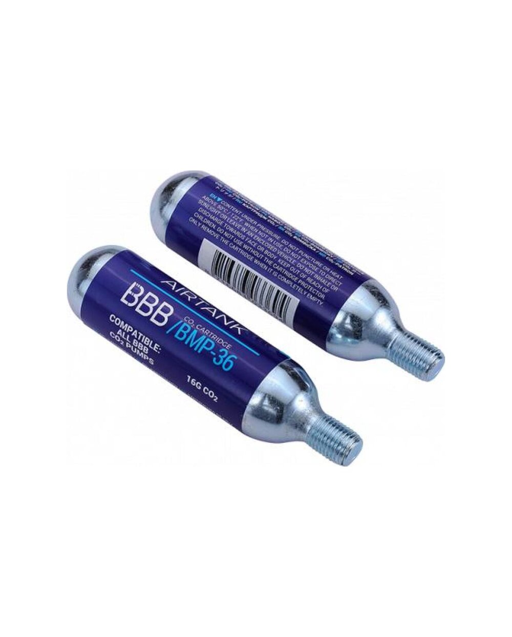 Wymienne wkłady do pompek BBB AirSafe, AirSpeed, EasyAir i CO2Blaster Butelki 16 g. 1 szt. pompuje oponę MTB do 40 psi / 2,8 bara lub oponę szosową do 125 psi / 8,2 bara. Opakowanie zawiera 2 szt.Szczegóły
