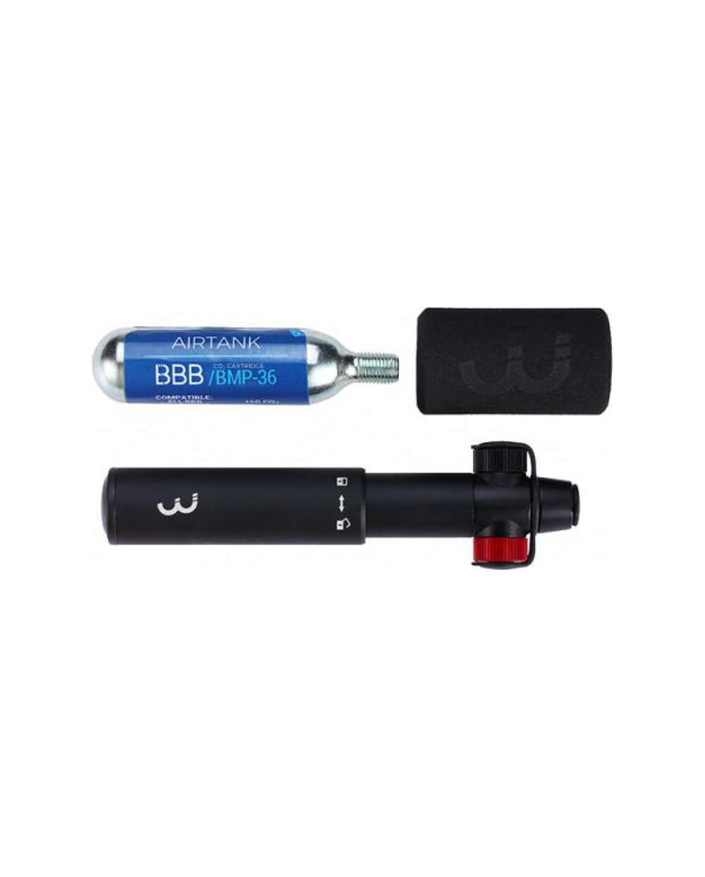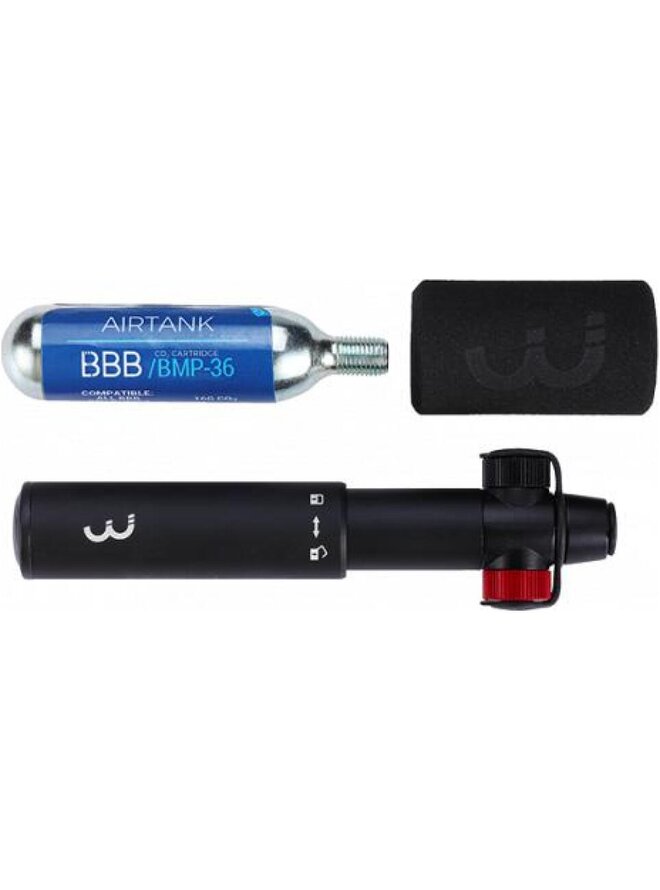 Aluminiowa pompka z bombami CO2, smukła, elegancka i lekka. Połączenie mini pompki i pompki CO2. Łatwa i bezpieczna w obsłudze. 16 gramowa bomba i piankowa nasadka ochronna w zestawie. System blokujący zapobiega wyślizgnięciu się rączki. Kompatybilna z zaworem automatycznym i galusowym. W zestawie z uchwytem na ramę. Pompuje do 8 bar/115 psi. Długość: 135 mm. Waga: 125 g. Kolor: czarny matowy.Szczegóły