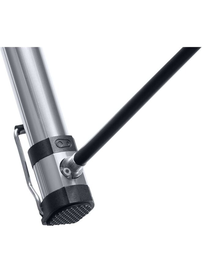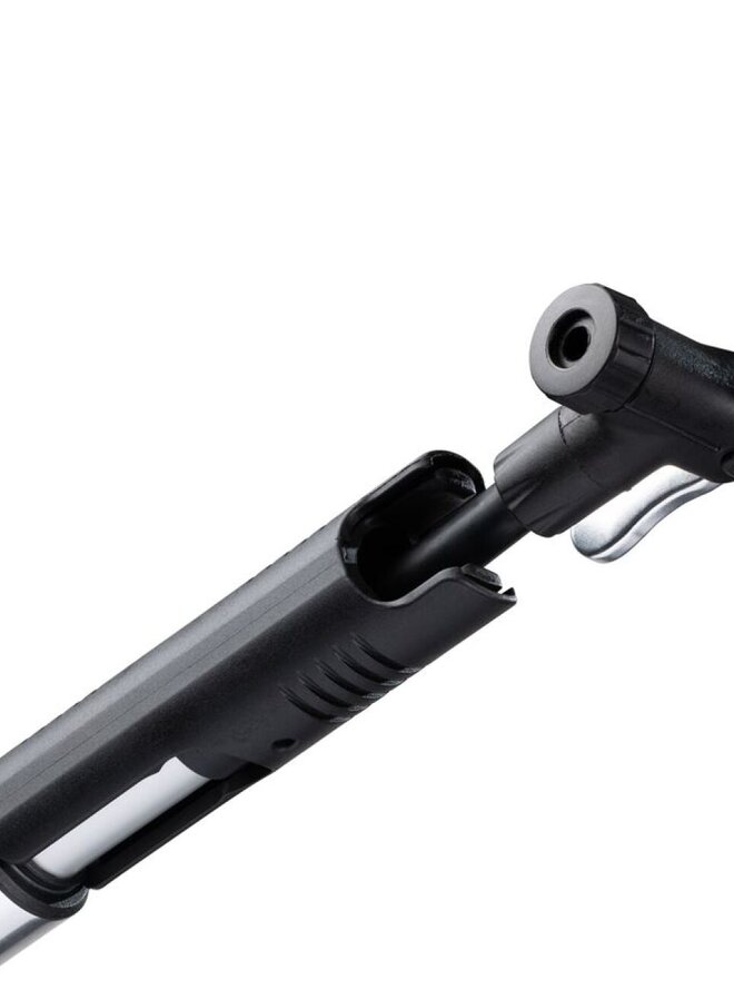 Unikalna lekka mini pompka, która wygodnie mieści się w plecaku i za pomocą której można napompować rower nawet na szlaku. Pompka jest wyposażona w gumowaną podstawę, odchylaną nóżkę zapewniającą dużą stabilność podczas pompowania, składany uchwyt, ukryty wąż wewnątrz korpusu i opatentowaną głowicę magnetyczną dla obu typów zaworów. Waga 171g Długość 325 mm Maksymalne ciśnienie 110 psi/7,5 bar Mocowanie do ramy nie wchodzi w skład zestawu.Szczegóły