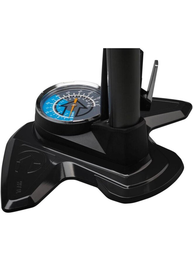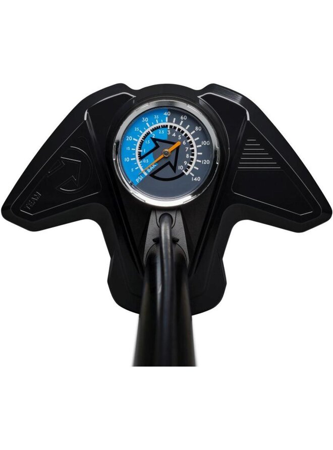 Pompka serwisowa z całkowicie aluminiowym korpusem. Manometr z 2 strefami wyświetlania - MTB (do 2,8 bar/40 PSI) i ROAD (do 9,5 bar/140 PSI) dla łatwiejszej obsługi. Aluminiowe oparcie dla lepszej stabilności. Głowica do AV/FV. Maks. 10 barów/140 PSI.Szczegóły