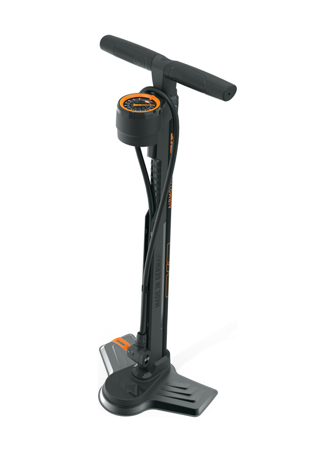 Pompka AIRMOTION 12.0 zapewnia maksymalne ciśnienie do 12 barów (skok 343 cm³). Dzięki metalowej podstawie, stalowej rurce o długości 715 mm i inteligentnym funkcjom stanowi prawdziwą atrakcję wizualną i techniczną. Wskaźnik ciśnienia jest umieszczony na górze, co zapewnia dobrą czytelność. Precyzyjny manometr, bardzo długi wąż z głowicą "MV EASY" MULTI VALVE i ergonomiczny uchwyt z przegródkami na dźwignie opon sprawiają, że AIRMOTION jest pompką najwyższej klasy. Do użytku w warsztacie lub podczas zawodów, jest bardzo łatwa do przenoszenia dzięki żebrowanemu uchwytowi.Szczegóły
