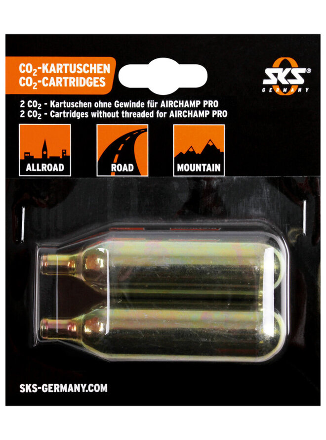 Zestaw dwóch bomb CO2 SKS 16g do pompki Airchamp, bez gwintu