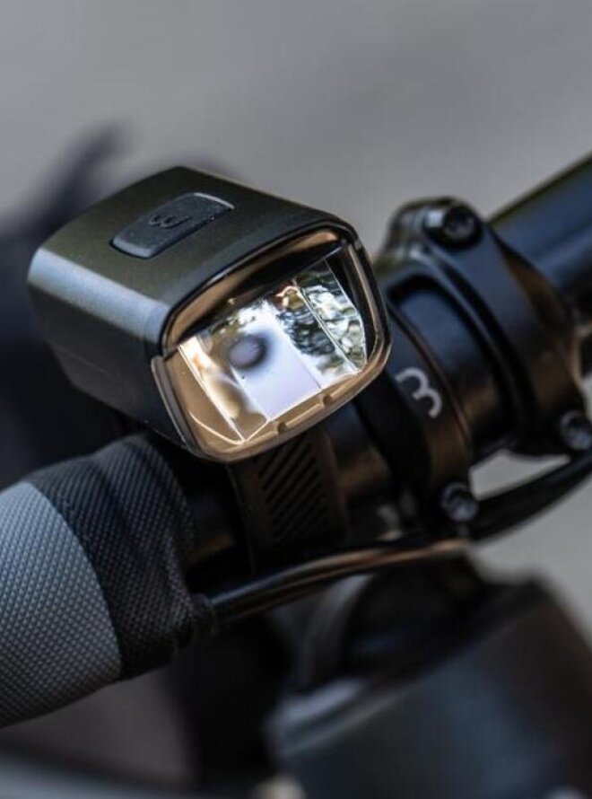 Światło odpowiednie dla ruchu miejskiego. Doskonała konstrukcja gwarantuje dużą widoczność, a jednocześnie wiązka światła nie oślepia wskaźnika statusu baterii. Akumulator litowy polimerowy (1000 mAh, 4,2 V). Elektroniczny system regulacyjny gwarantuje stałą ilość promieniowania światła w całym świetle. Jeśli bateria zbliża się do stanu rozładowania, światło jest automatycznie wyłączane. Światło na mocy RE -mocy jest ustawione na ostatnie używane modne mocowanie w kierownicy za pomocą silikonowego paska. Zawiera kabel Micro-USB do szybkiego i łatwego ładowania za pośrednictwem portu USB. Tryby: słabe światło, standardowe światło, zdalne światło, migotanie. Opór wodny: IPX5 (niskie ciśnienie wody od dowolnego kąta) Wysokość x szerokość x długość (mm): 35x43x65. Waga 71G Kolor: czarny. BLS-143 STUD Tryb oświetlenia lekkiego Światła wydajność w Lumen Intensywność światła do 1 m luks/cd Intensywność światła na 10 m luks Długość wiązki światła w metrach Czas oświetlenia w godzinach Czas ładowania Bateria / typ Zdalnie 130 2300 33 96 03:00:00 02:00:00 Polimer litowy Przyciemnione 60 1300 18 72 05:00:00 Migocący 130 2300 3305:00:00