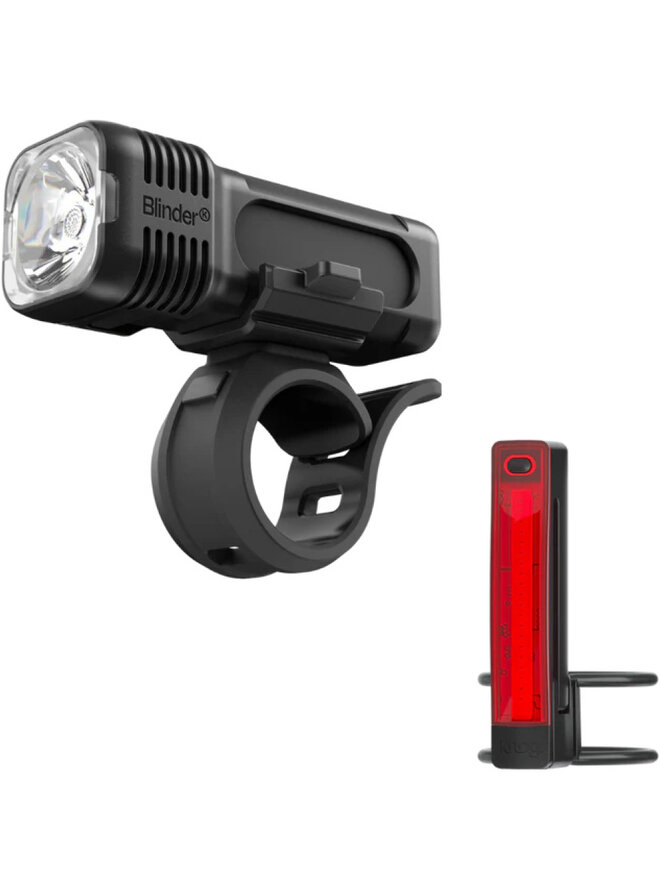 Knog Blinder 400 & Plus to doskonale wyważony zestaw świateł, który łączy w sobie mocne oświetlenie przednie z inteligentnym i elastycznym światłem tylnym. Przednia lampka Blinder 400 jest kompaktowa, ale trwała - oferuje 400 lumenów i skoncentrowaną wiązkę światła 18°, która doskonale przecina ciemność i zapewnia temperaturę barwową światła dziennego, zmniejszając zmęczenie oczu podczas nocnych przejażdżek.