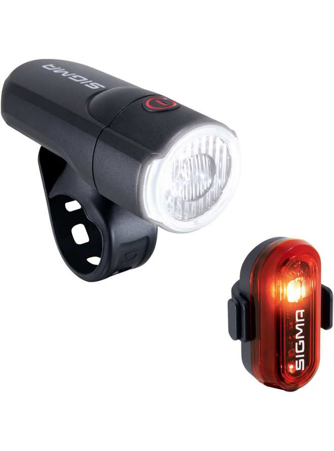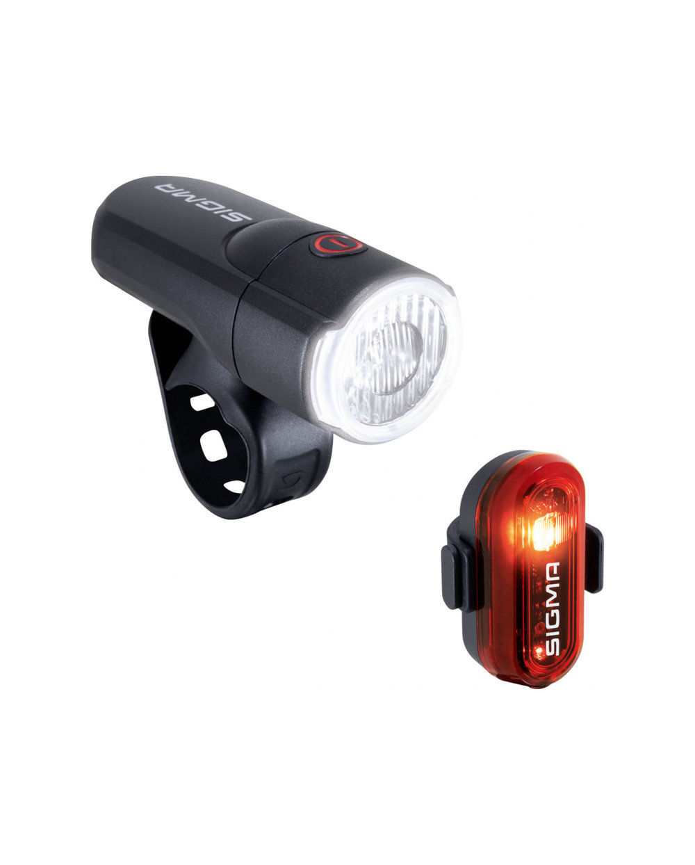 Zestaw oświetleniowy składający się z przedniej lampki AURA 30 i tylnej lampki CURVE firmy SIGMA SPORT to niezawodny przewodnik dla wszystkich rowerzystów poszukujących niedrogiego i łatwego w użyciu oświetlenia do miasta. Zasilane bateryjnie lampki można łatwo zamontować na kierownicy lub rurze podsiodłowej i są certyfikowane do ruchu drogowego. Boczne elementy świetlne AURA 30 poprawiają widoczność innych użytkowników drogi. Ta lampka rowerowa przekonuje sportową, kompaktową konstrukcją i zasięgiem 40 metrów. Lampka tylna CURVE ma wyjątkowo długą żywotność, a jej sportowy design będzie imponujący na rurze siodełka.