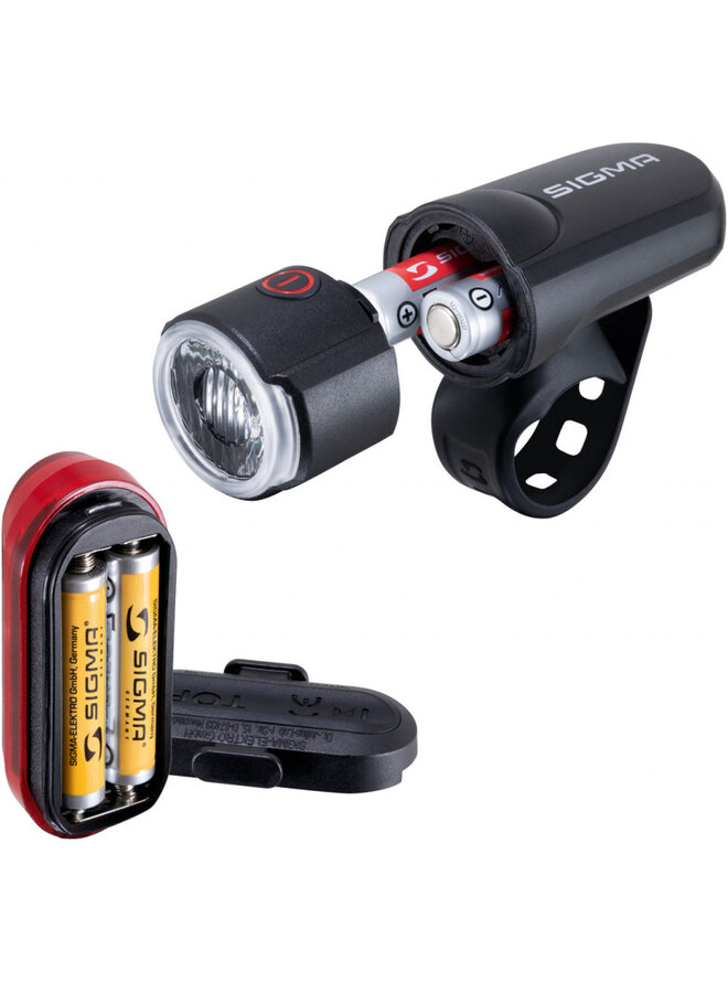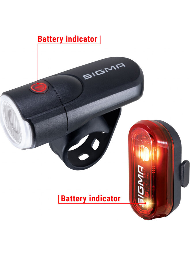 Zarówno przednie, jak i tylne światła są zasilane bateryjnie. Lampka AURA 30 wymaga dwóch baterii AA, a tylna lampka CURVE trzech baterii AAA. Baterie są dostarczane wraz z lampkami. Oba światła są wyposażone we wskaźnik stanu baterii, który niezawodnie informuje o niskim stanie baterii i daje wczesne ostrzeżenie o potrzebie ich wymiany. W razie potrzeby baterie można łatwo wymienić.