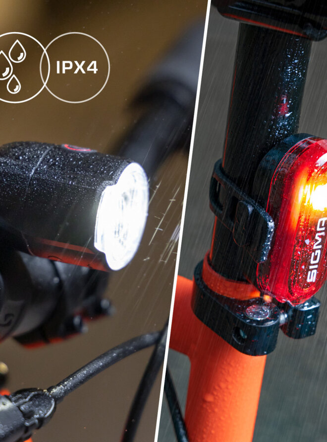 Światła AURA 30 i CURVE są odporne na zachlapania IPX 4 i dlatego nadają się do użytku zarówno na wietrze, jak i w deszczu.