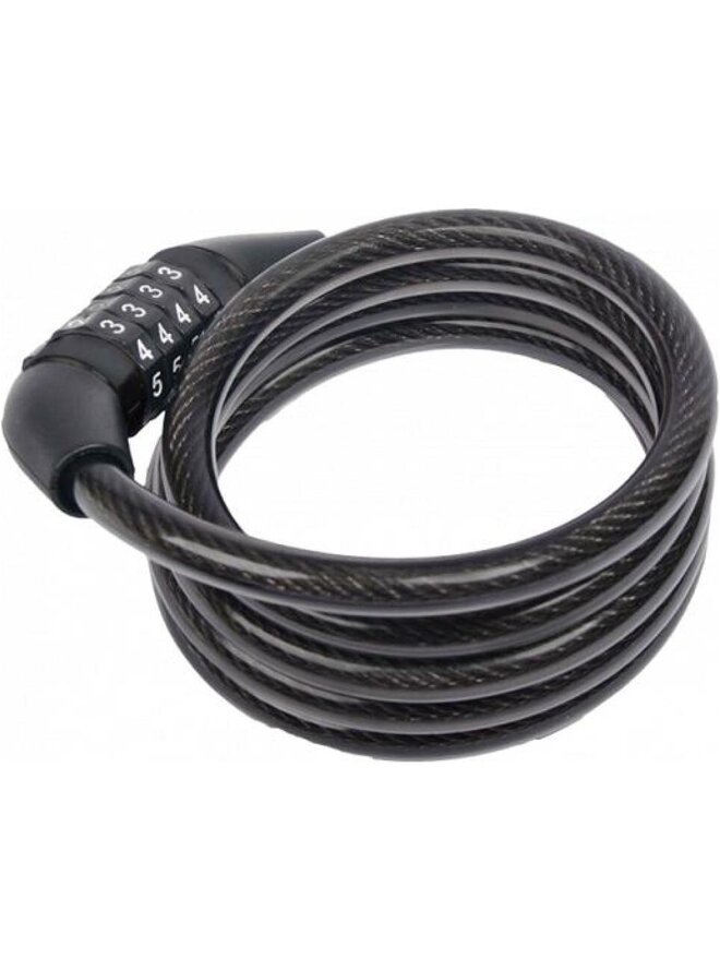 Mocny i trwały zamek z wewnętrzną stalową linką dla maksymalnej ochrony. Zamek ma klasę bezpieczeństwa na poziomie 4. 4-cyfrowy kod numeryczny z indywidualną regulacją. Wytrzymały mechanizm blokujący. Osłona linki zamka chroni ramę roweru przed zarysowaniami. Wymiary: 8 mm x 1200 mm. Kompatybilny z BBL-92 CableFix. Kolor: czarny;Szczegóły