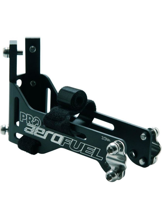 Uchwyt na 2 bidony, odpowiedni do jazdy na czas lub triathlonu. Łatwy montaż na rurze podsiodłowej, regulowany kąt i wysokość. Materiał: aluminium. Waga: 92 gSzczegóły