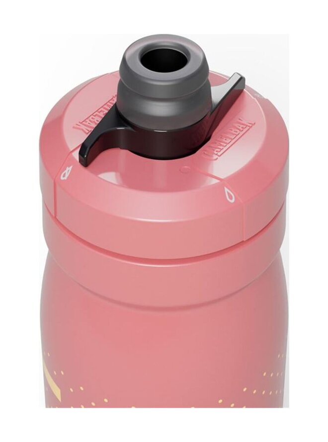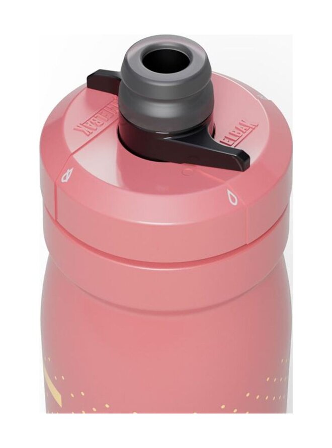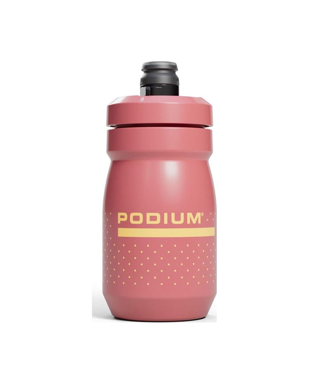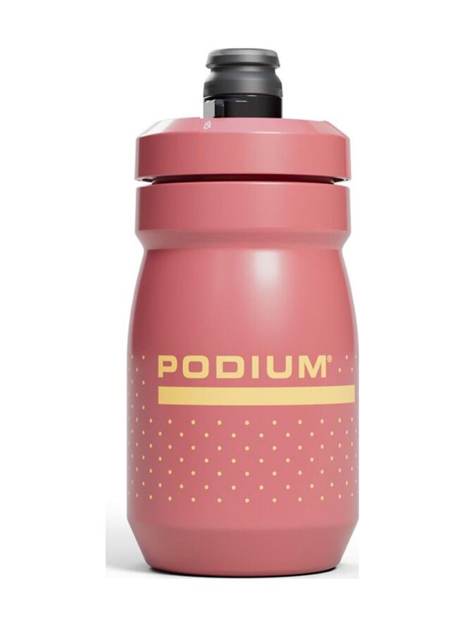 Butelki CamelBak Podium są wykonane z polipropylenu niezawierającego BPA, BPS i BPF, co zapewnia realistyczny smak bez posmaku plastiku. Dzięki opatentowanemu samozamykającemu się ustnikowi Jet Valve wykonanemu z silikonu klasy medycznej, woda z butelki nie kapie na ramę. Dodatkowo, butelka posiada w pełni odkręcaną zakrętkę (lock-out) do transportu pełnych butelek w torbie lub samochodzie. Zakrętkę i ustnik można łatwo zdemontować i wyczyścić. Dzięki idealnemu kształtowi butelka Podium jest łatwa do trzymania na rowerze, łatwa do ściśnięcia i nigdy nie zgubisz jej z koszyka. Podium to najwyższej jakości bidon rowerowy, który od dawna wyznacza standardy jakości. Pojemność 0,44 lSzczegóły